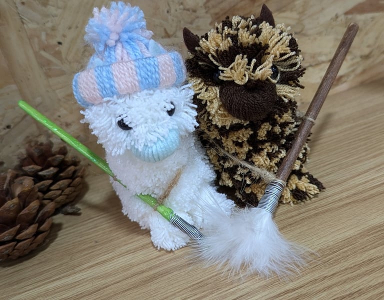 Los accesorios son los más variados. Pueden estar hechos con más lana, con fieltro, con complementos rígidos hechos con resina Epoxi, madera tratada, otro tipo de telas... ¡Depende de lo que nos pidáis!