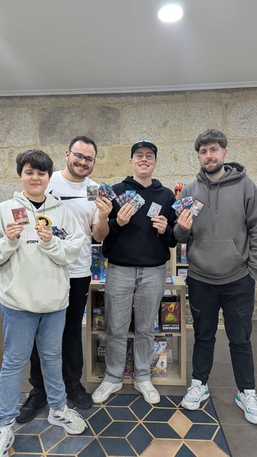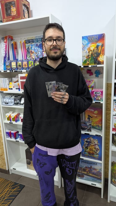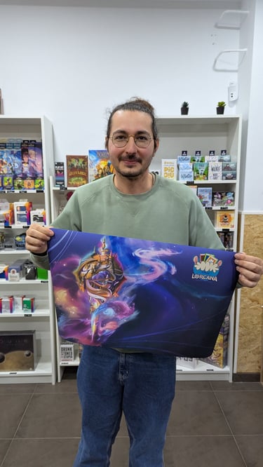 Al finalizar las explicaciones, los jugadores habituales de Lorcana y parte de la gente nueva se ha sumado a jugar la Liga. ¡Fue genial, casi no entraba nadie más en al tienda! Las promos del viernes se las llevaron Eva y Víctor, y la caja a sorteo también Eva ¡Está en racha!