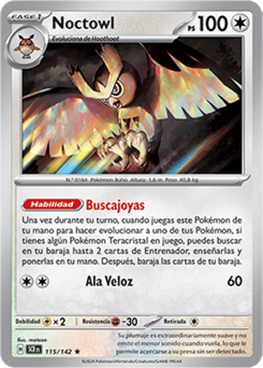 Las cartas clave de su baraja son: ElectroFuria Ex (Raging Bolt), Ogerpon Máscara Turquesa, Noctowl y Vitalidad de la Profesora Albora (Sada).