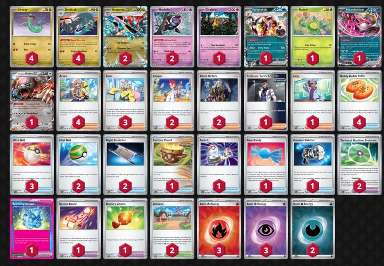 Su baraja es Dragapult Ex adaptada a la nueva rotación, incluyendo a Fezandipiti ex y Budew.