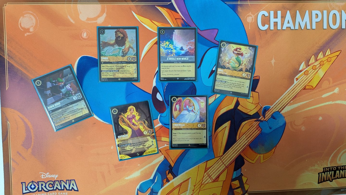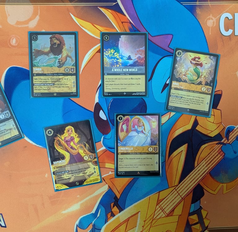 Lorcana es uno de los TCG más recientes, y nos complace decir que hemos tenido un evento con mucha participación. Entre todas las personas que han venido a nuestro evento, quisieron destacar el mazo de Dani, que como podéis ver, está formado por cartas no sólo muy buenas, sino que también muy bonitas, algo muy característico de este TCG de Disney: Rapunzel, Cinderella, Simba, Robin Hood y Ariel como personajes principales de la baraja y "A whole new World" (Un mundo ideal) como canción estrella.