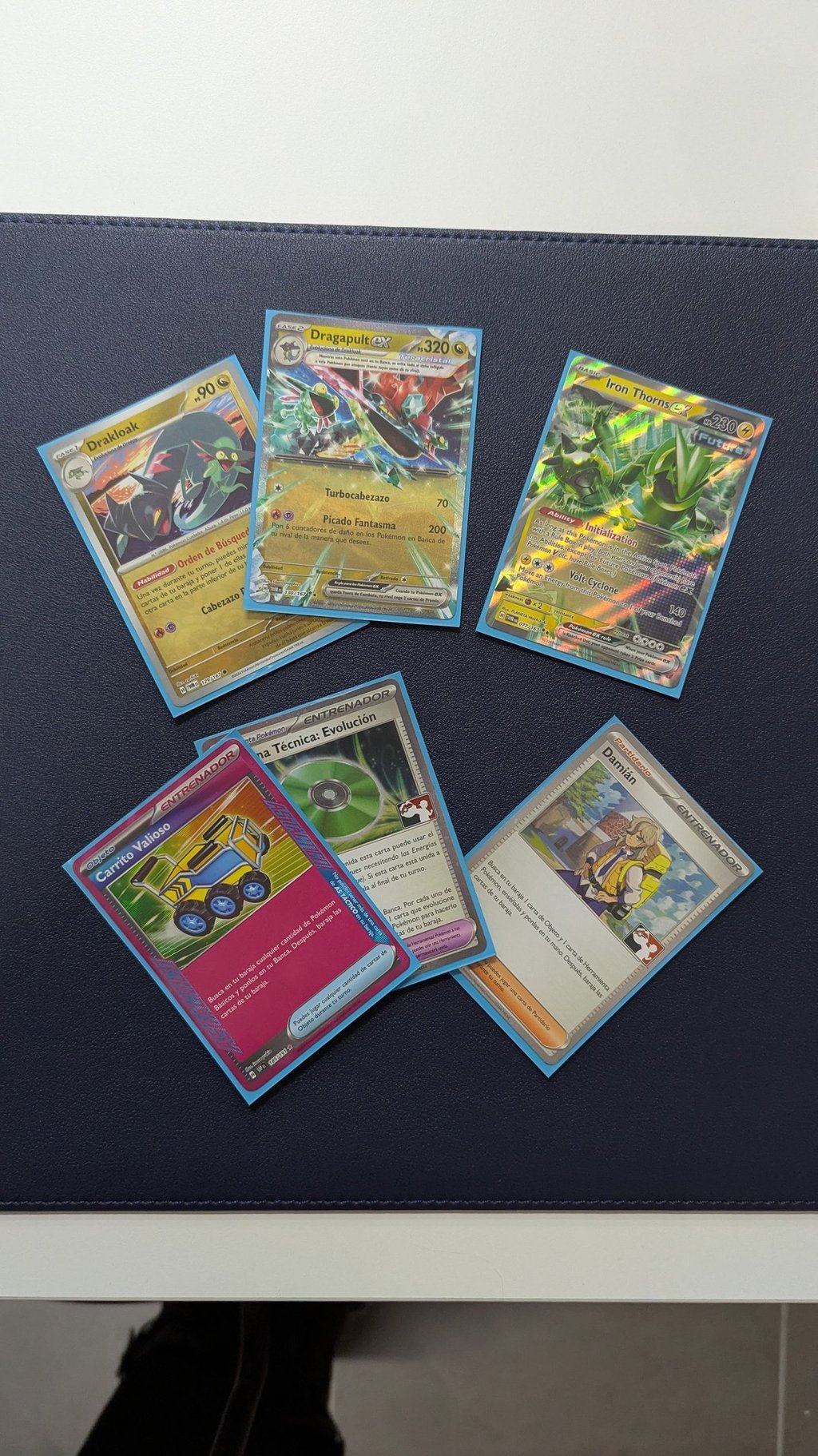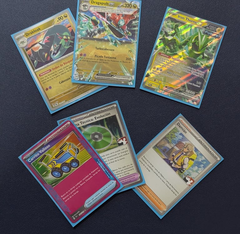 Las cartas estrella de su baraja son: Ferropúas Ex (Iron Thorns Ex), Dragapult Ex, Damián, Máquina Técnica: Evolución y Carrito Valioso.