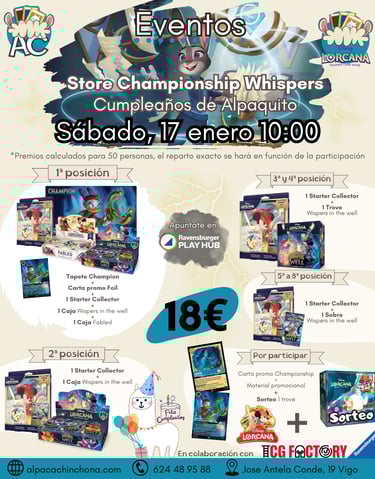 Eventos de Lorcana: V - 17:00 // S - 11:00 // Mier - 17:00