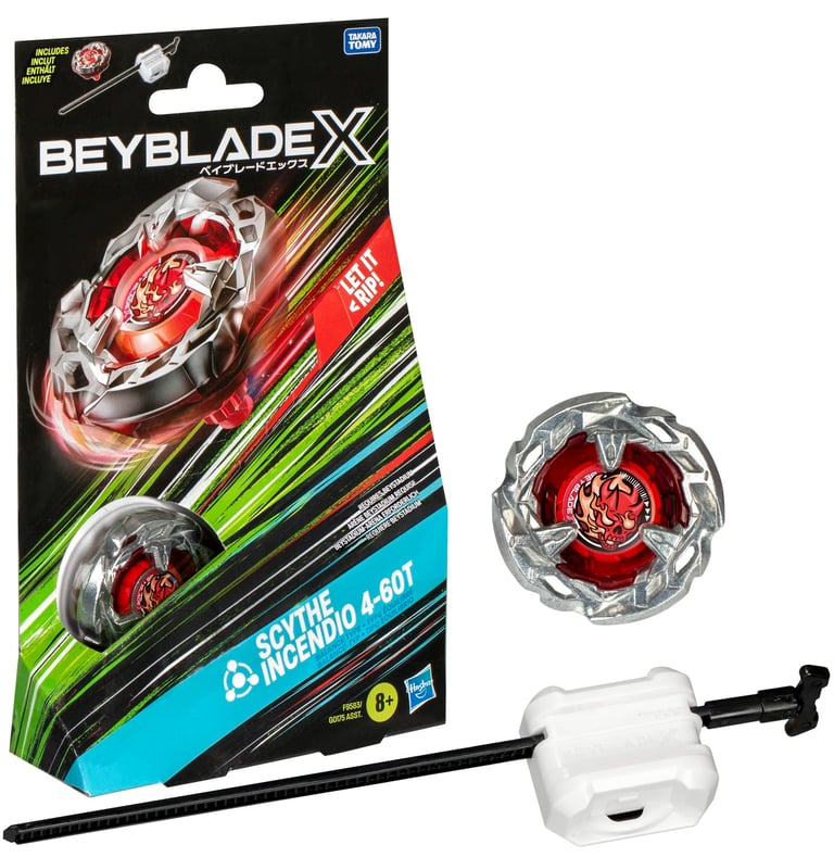 Nuestra tercera y última recomendación para que tengas un deck equilibrado, es este "Scythe Incendio 4-60T", un Bey bien balanceado y capaz de defenderse de casi cualquier tipo de agresión, mientras es capaz de dar buenos golpes con su gran capacidad de contraataque.