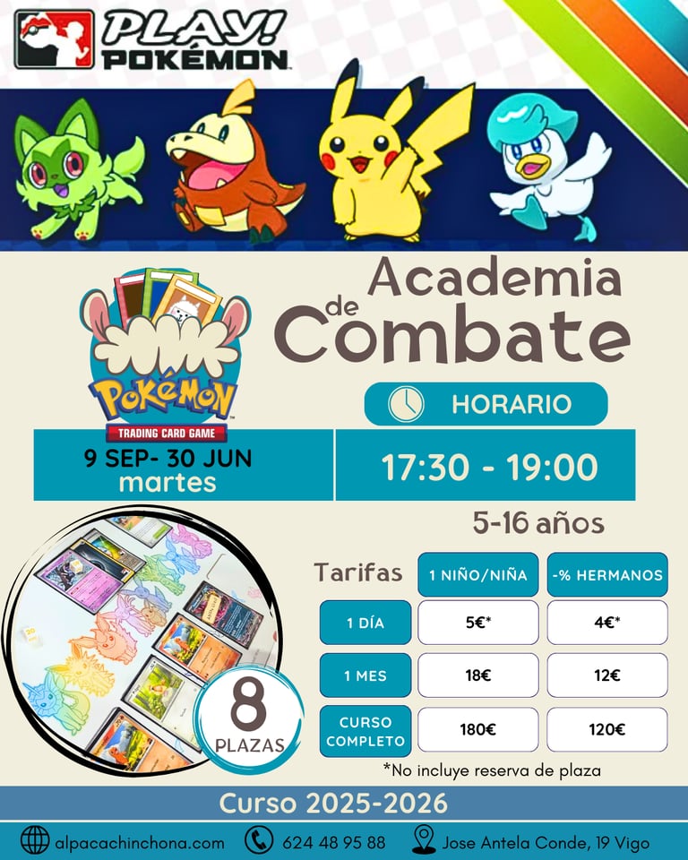 Del 9 de septiembre al 30 de junio (curso escolar 2025-2026) tendremos activa nuestra Academia de Combate Pokémon.