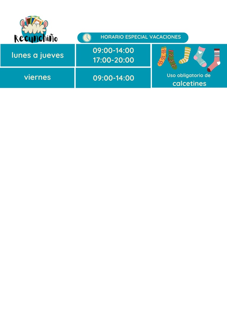 Del 22 al 31 de diciembre y del 2 de agosto al 5 de enero podrás disfrutar del espacio Recunchiño con horario ampliado para facilitar la conciliación.